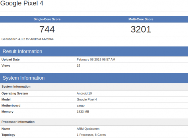 The most interesting information that was leaked in the GeekBench report is that Pixel Sargo is going to run on Android 10. This is the successor of Android 9.0 Pie which is currently rolling out to all the latest flagship smartphones.